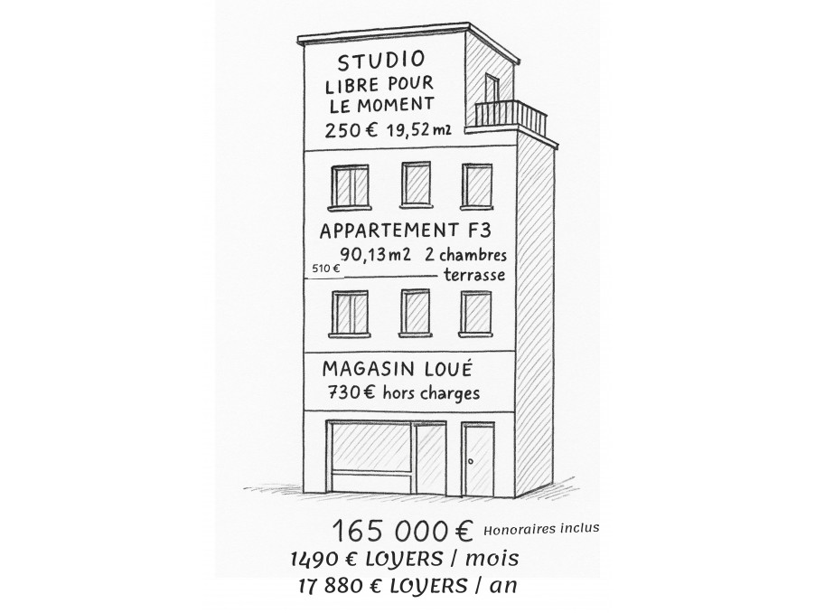 Actuellement loué 730 € hors charges, ce magasin en rez-de-chaussée bénéficie d’une belle visibilité et d’une situation dynamique. Locataire en place, bon rendement locatif et entretien soigné.