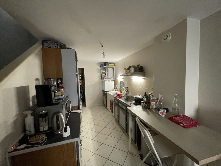 Cette maison se compose de 3 niveaux. Au rdc, une grande cuisine à aménager selon vos besoins, un wc, une buanderie et l'accès au jardin.