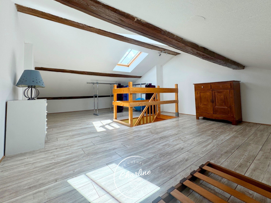 À l’étage, vous trouverez 2 grandes chambres lumineuses, et les combles aménagés offrent une troisième chambre spacieuse.