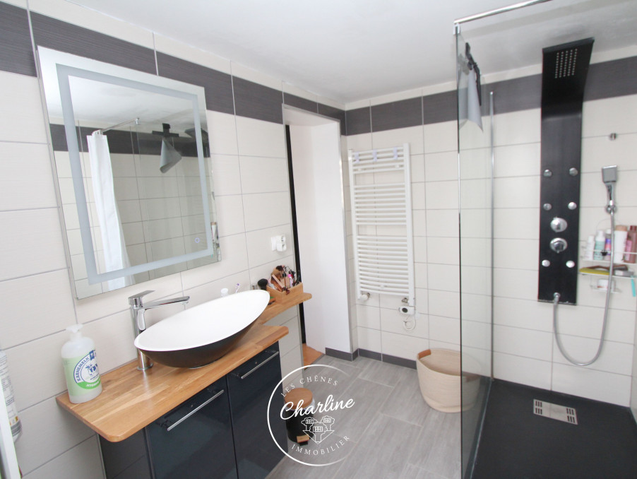 - Deux salles de bain : une dans la chambre parentale et une au premier niveau.