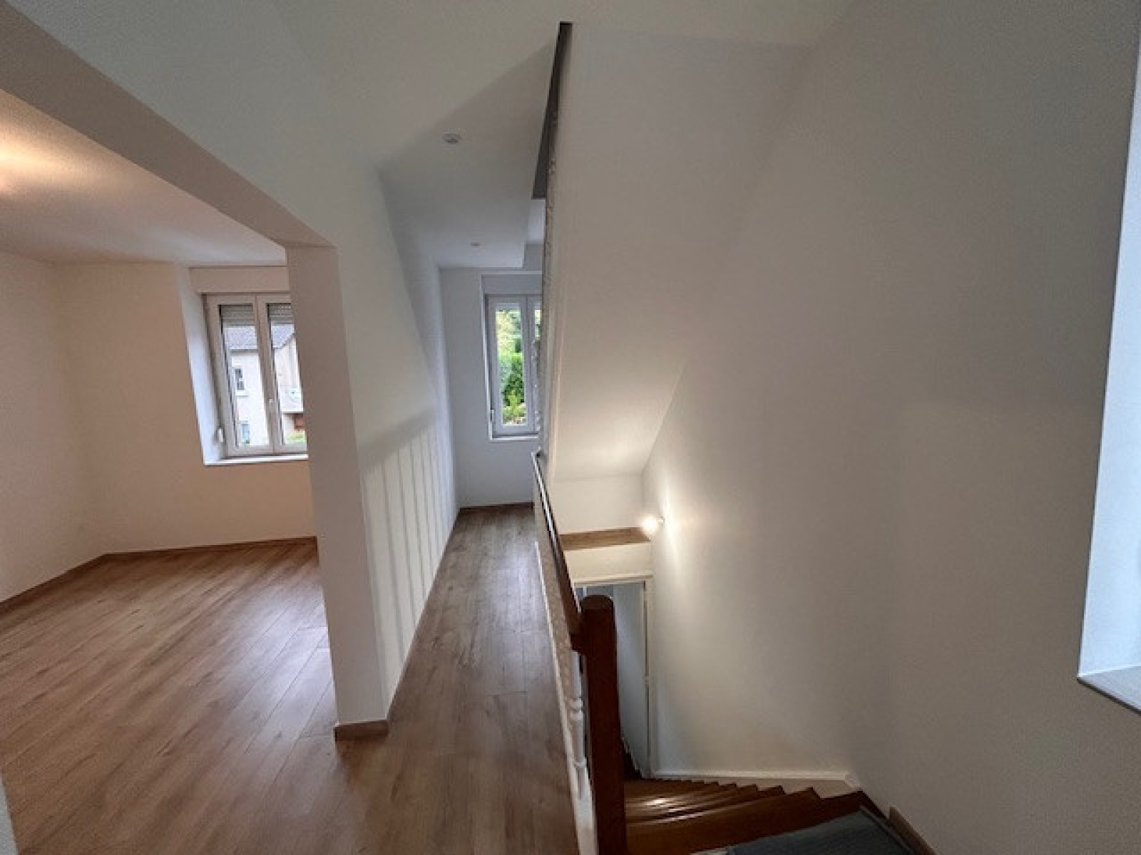 A proximité de Hayange et des axes menant à la frontière luxembourgeoise Beau duplex de 4 pièces entièrement rénové en 2025. L'appartement dispose de son entrée indépendante et offre de beaux volumes. Le 1er niveau vous offre un séjour avec cuisine aménagée et entièrement équipée, un salon et un WC. A l'étage, 2 belles chambres sous combles mais facilement aménageables, une salle de bains avec douche et WC. L'appartement dispose également d'une grande cave au sous sol. Chauffage électrique (neuf) / DPE D Double vitrage Aucune charge (TEOM facturée une fois par an) L'appartement est disponible début avril.