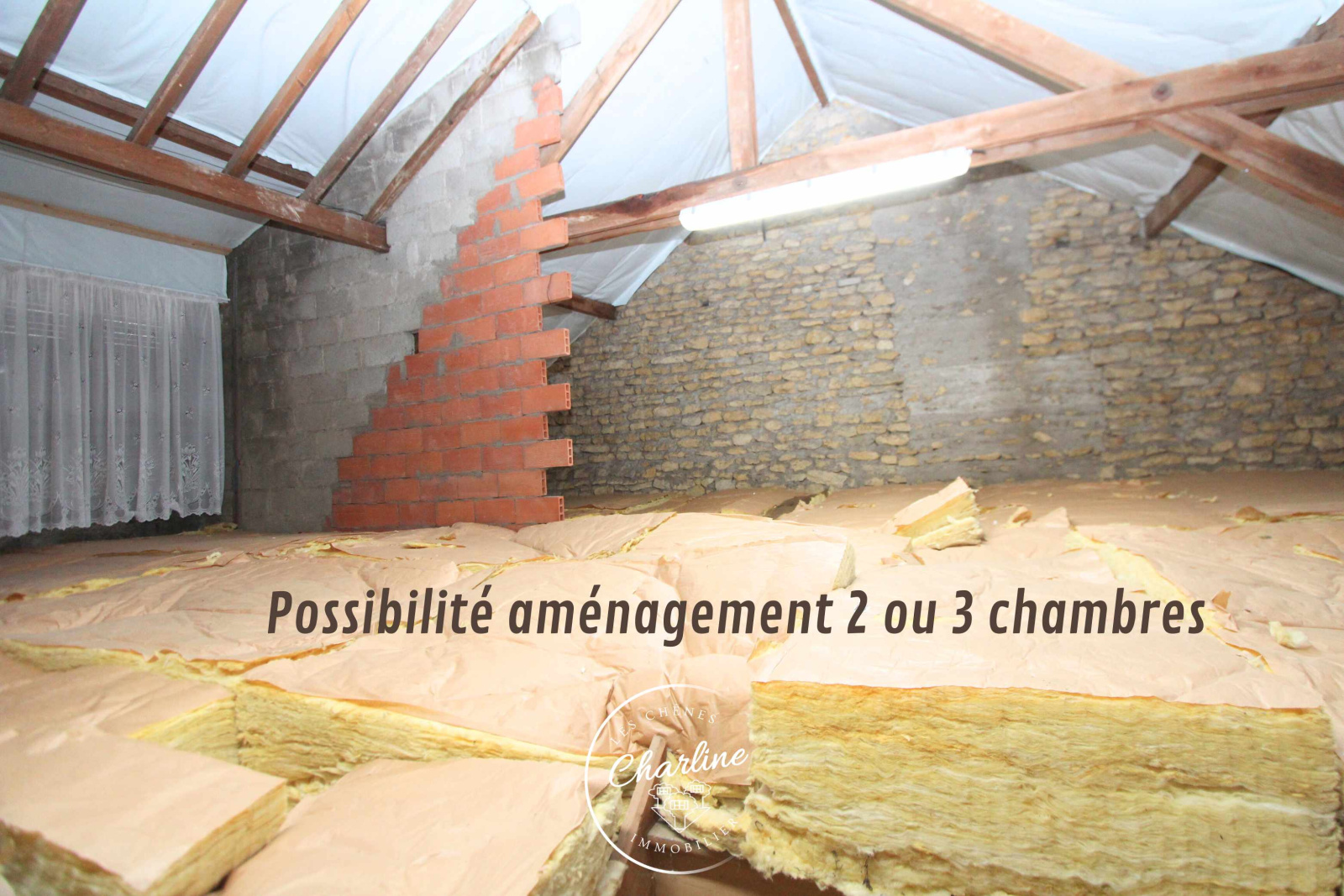 En grenier: plateau aménageable en 3/4 pièces supplémentaires.