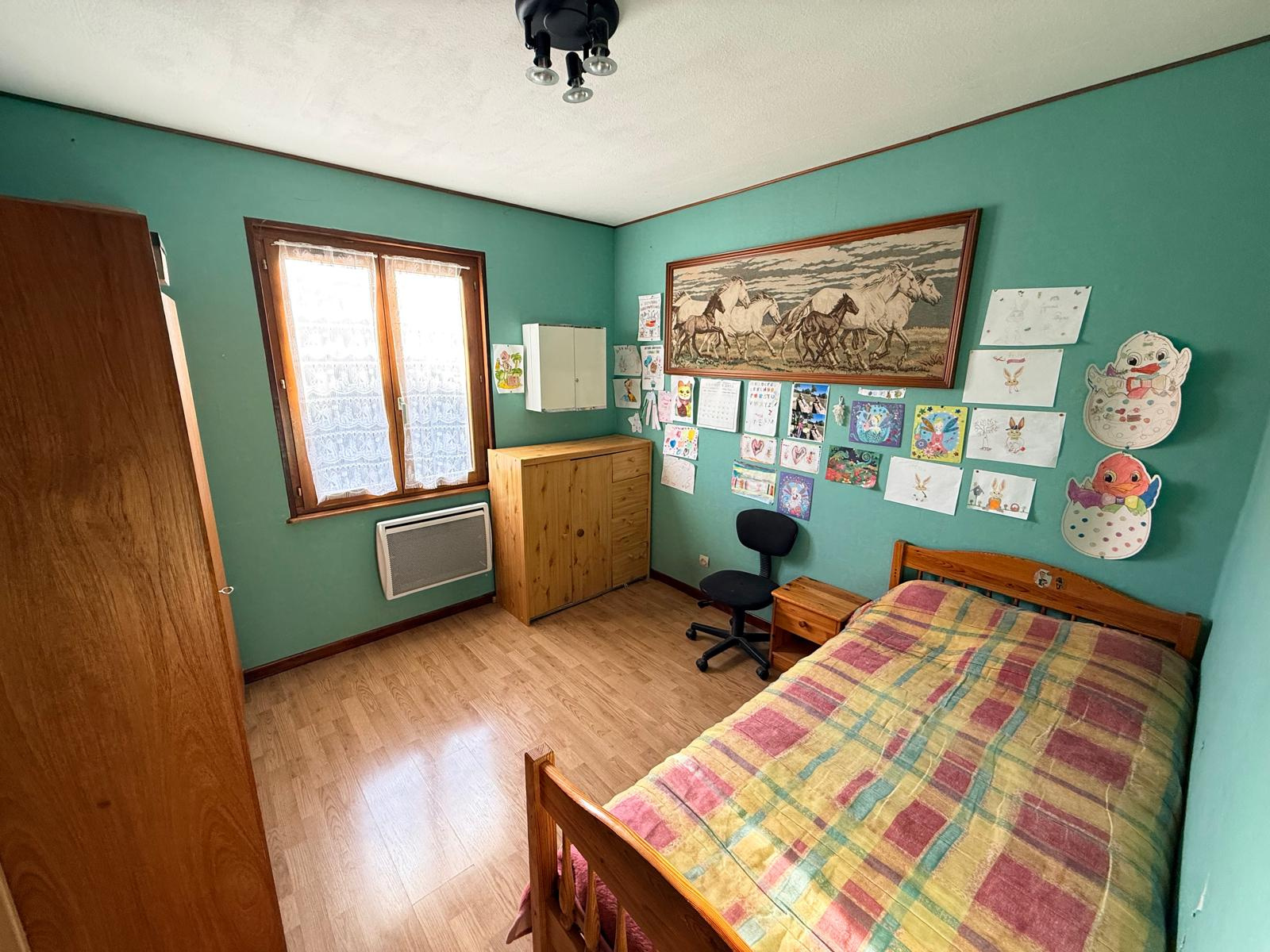 Fonctionnelle et bien entretenue, elle dispose du double vitrage, d'une cheminée et chauffage électrique. DPE : D et B.