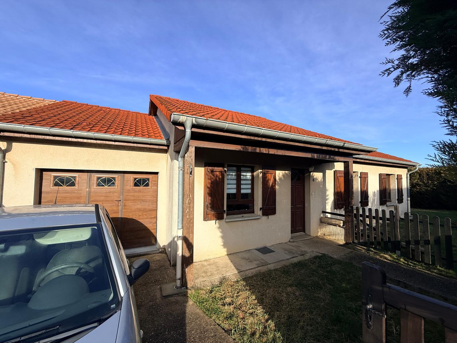 À Sainte-Marie-aux-Chênes, découvrez cette agréable maison de plain-pied située dans un environnement calme . Elle offre un lumineux salon-séjour avec cheminée et accès direct au jardin clos, une cuisine indépendante, 3 chambres, un bureau ainsi qu’un garage.