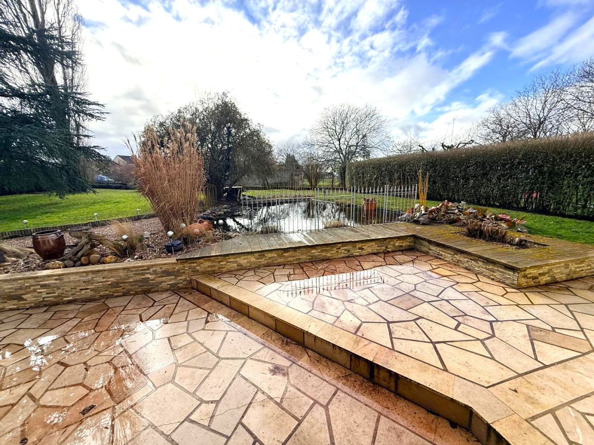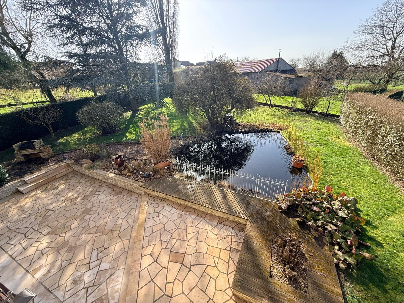 Implantée au calme dans un environnement verdoyant avec bassin à poissons, cette maison bénéficie d’une toiture récente, de fenêtres en triple vitrage, d’une cheminée, d’un chauffage électrique et d’une bonne isolation.
