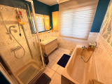 À l’étage, vous trouverez trois belles chambres avec la possibilité d’en créer une quatrième, une salle de bains avec douche et baignoire ainsi qu’un deuxième WC.