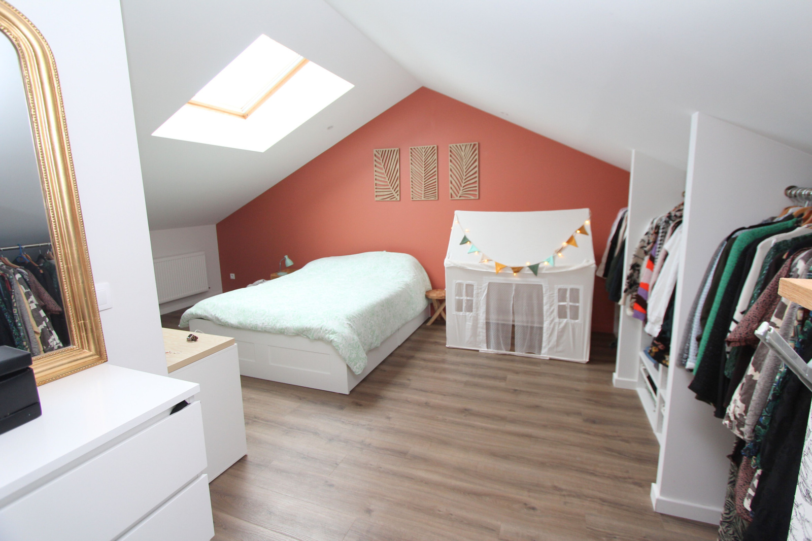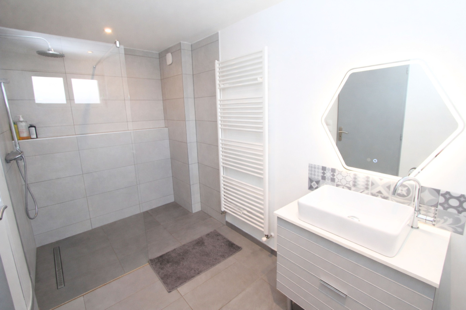 La partie nuit comprend deux chambres, dont une belle suite parentale avec sa salle de bain privative. Une seconde salle de bain indépendante complète l’ensemble pour plus de confort au quotidien.