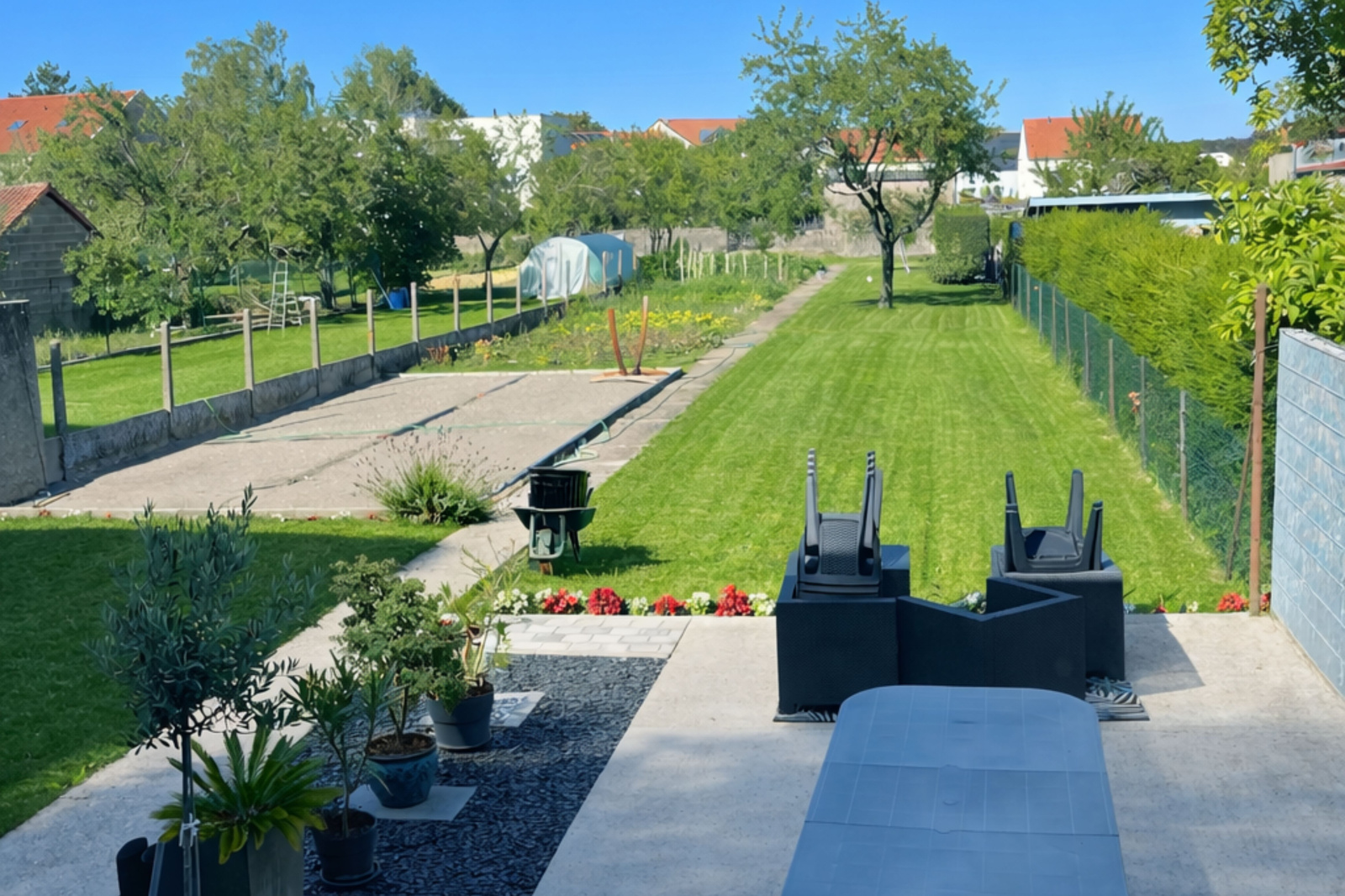 À l’extérieur, une terrasse agréable prolonge l’espace de vie et donne accès à un grand jardin, parfait pour profiter des beaux jours.