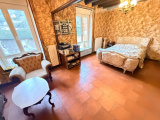 Belle maison située au calme, composée d’un salon-séjour, d’une cuisine équipée, d’un WC, avec accès au garage et à la buanderie.
